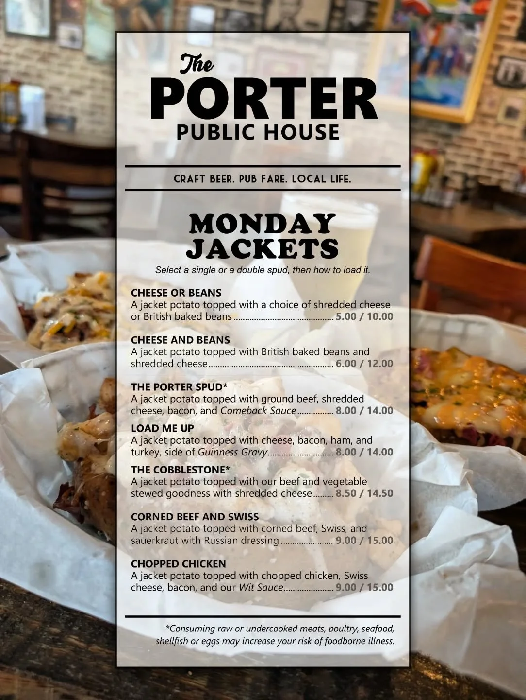 Whether it’s the food or the beer, tabletop games for the family, mug club memberships for the regular, or live music and entertainment for the fun seeker, The Porter Public House is the place for you to make yourself at home. Come see us.